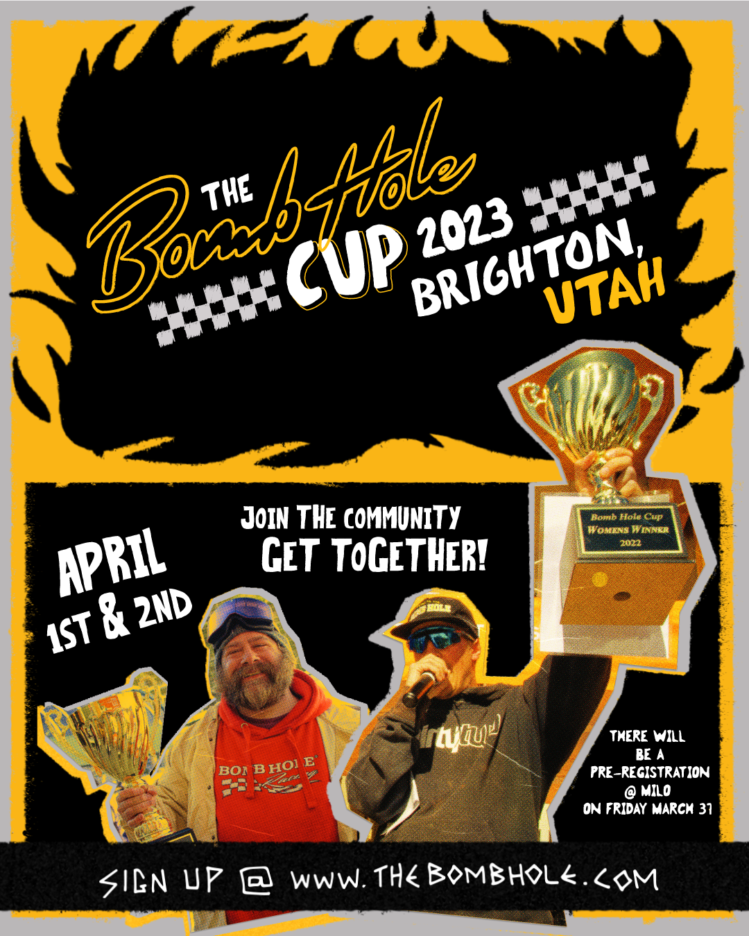 The Bomb Hole Cup 2023, in its second year, was a snowboarding event hosted by The Bomb Hole Snowboard Podcast, continuing its aim at bringing the snowboarding community together. It featured contests and challenges for riders of all levels, celebrating the sport and its culture. The two-day format continued, with Day 1 as the banked slalom "Race Day" and Day 2 as the "Park Showdown."