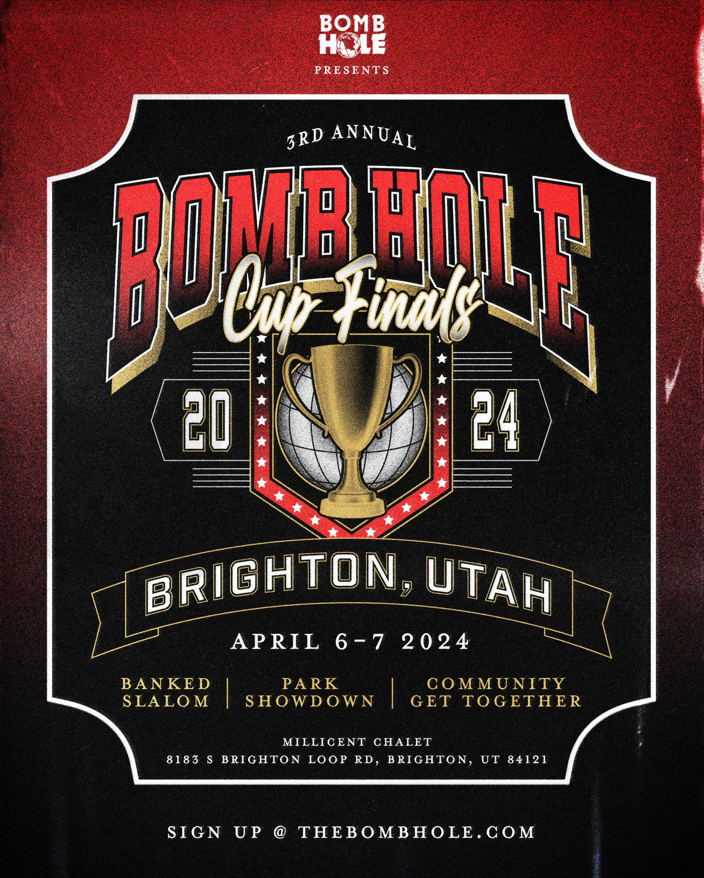 The Bomb Hole Cup 2024 was the third installment of The Bomb Hole Snowboard Podcast's annual event. Inspired by the spirit of championship sports, the event unites the snowboarding community for two exciting days of competition and camaraderie, Riders of all levels, from pros to enthusiasts, gather to celebrate their shared passion for snowboarding.