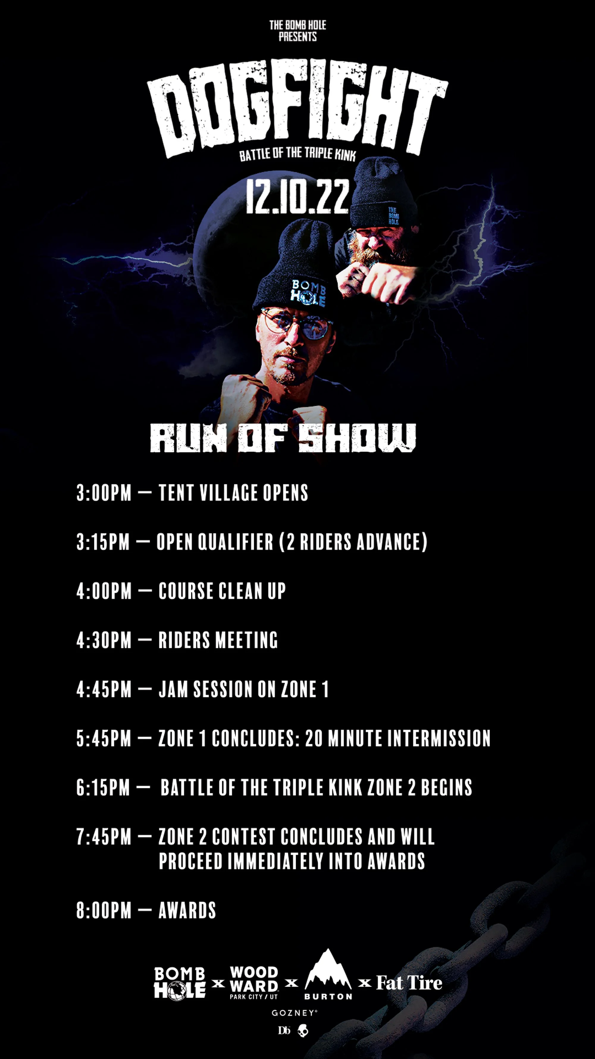 DOGFIGHT was The Bomb Holes standalone gauntlet-style event, designed to cultivate an energetic atmosphere. By bringing together some of the world’s top snowboarders to compete under the lights in front of a lively crowd, riders showcased their best talents and battled for a large cash purse. Although the event was invite-only, it kicked off with an open qualifier session that allowed two riders to earn their spot among the “Big Dogs.” The jam session was held in two specially designed zones. The first zone featured a large three-block gap to a down bar, while the second zone highlighted the main event: the triple kink stair, hence the name “DOGFIGHT: Battle Of The Triple Kink.”